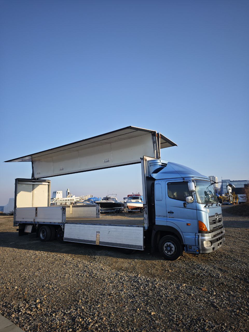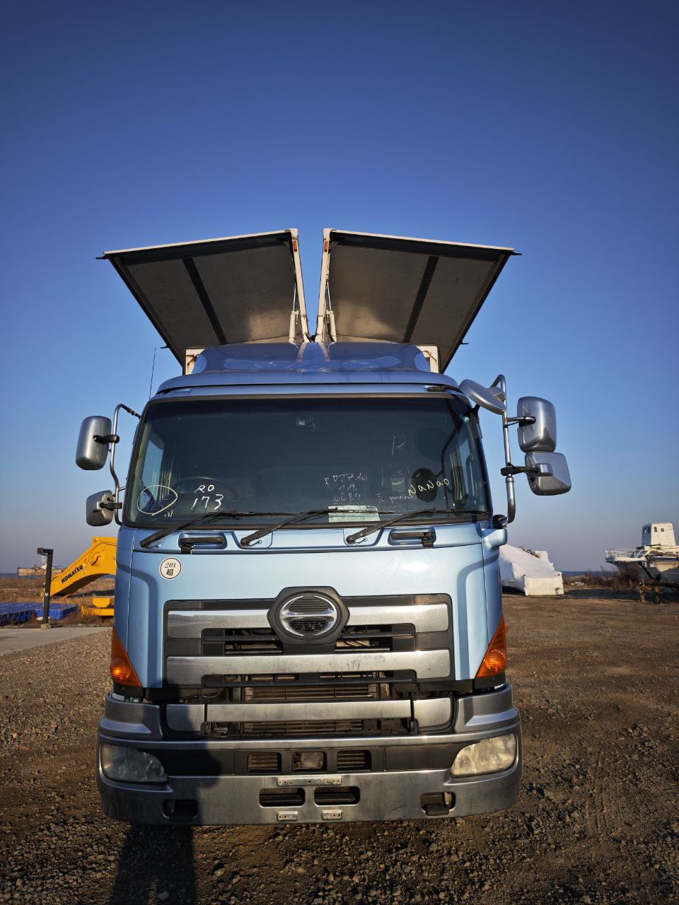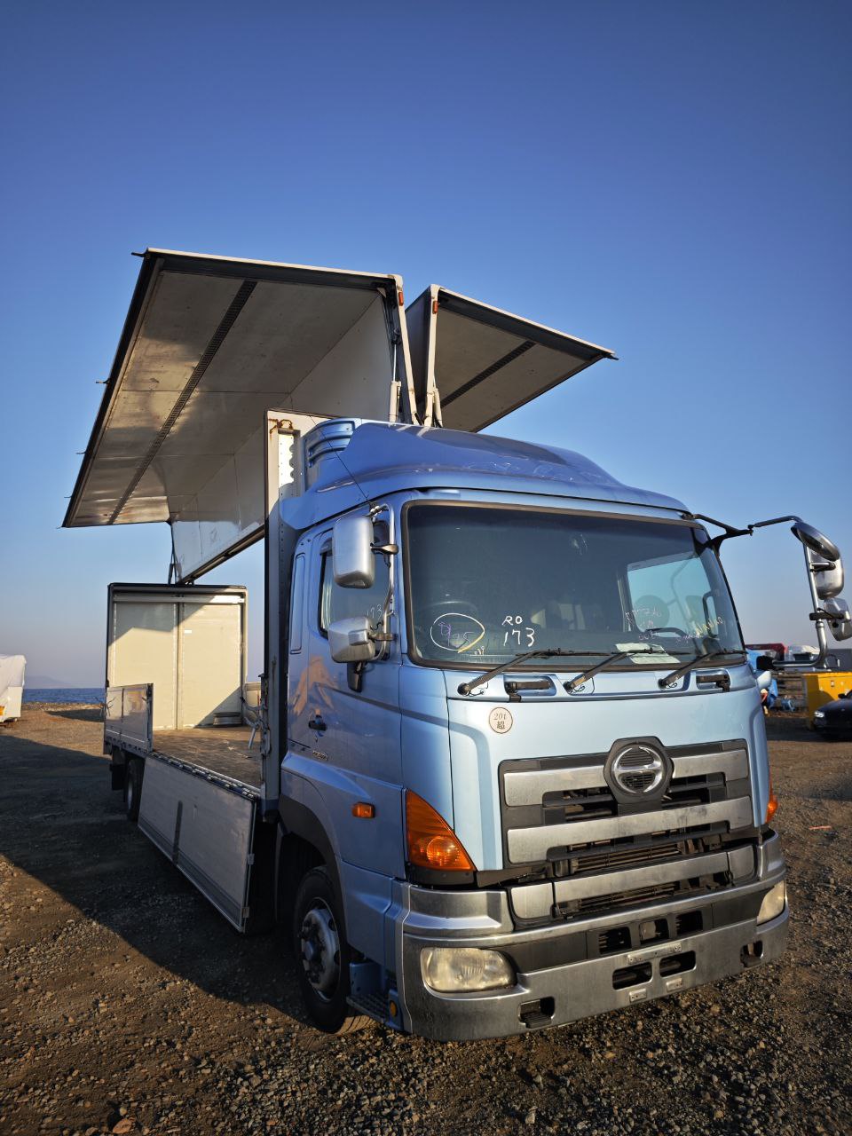 Данный автомобиль Hino Profia 2011 года, был куплен нашей компанией для нашего нового клиента из города Омска. машина была куплена на аукционе ARAI Oyama с оценкой 3.5 балла. срок поставки авто с момента до прихода его во Владивосток, составил 3 месяца.